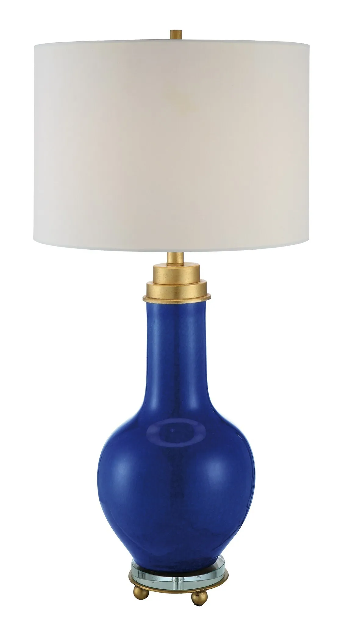 Penta Table Lamp 32"Ht.,Ceramic&Crystal&Metal Royal Blue Ceramic&Gold Finish 16 x 16 x 11 White Silk Shade