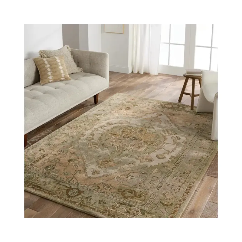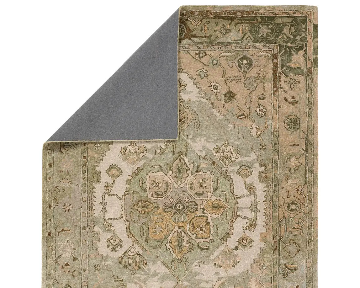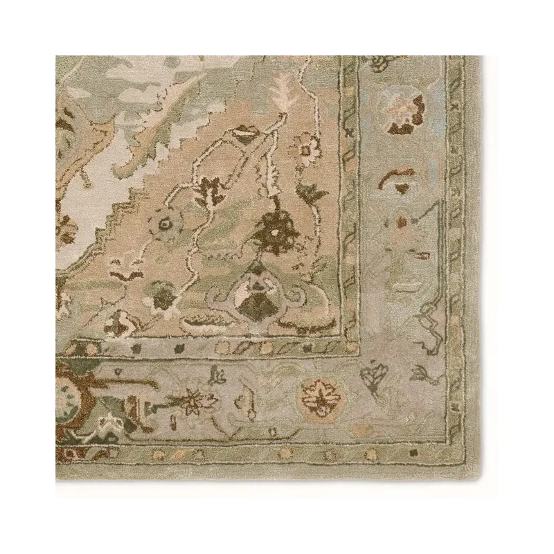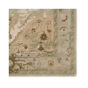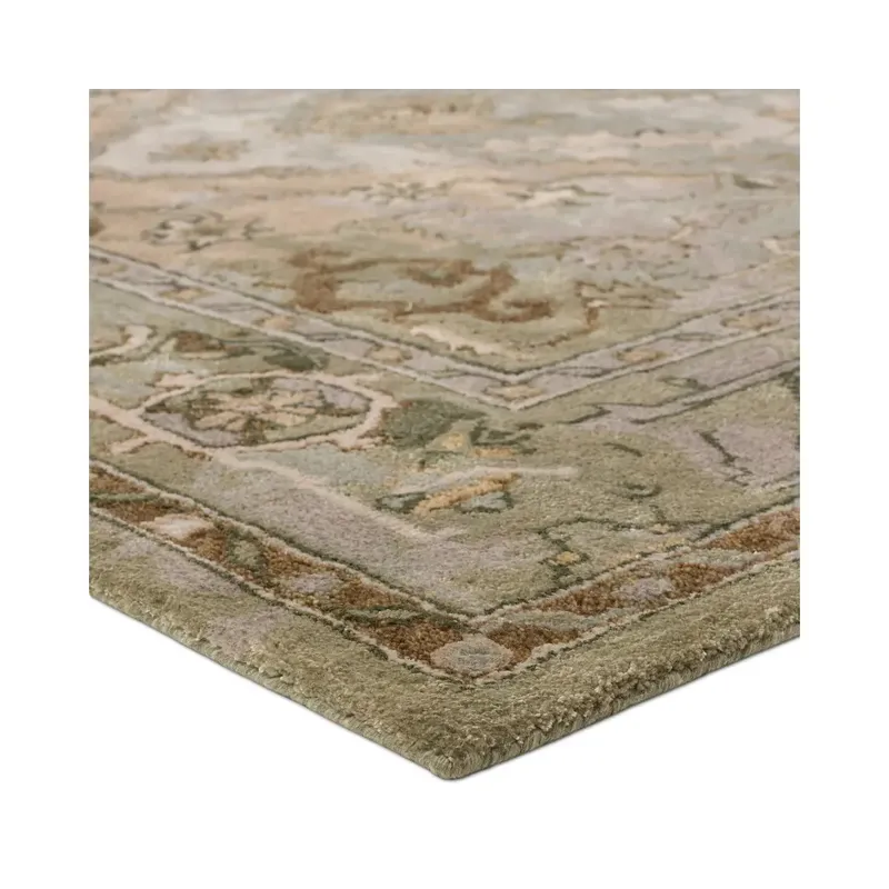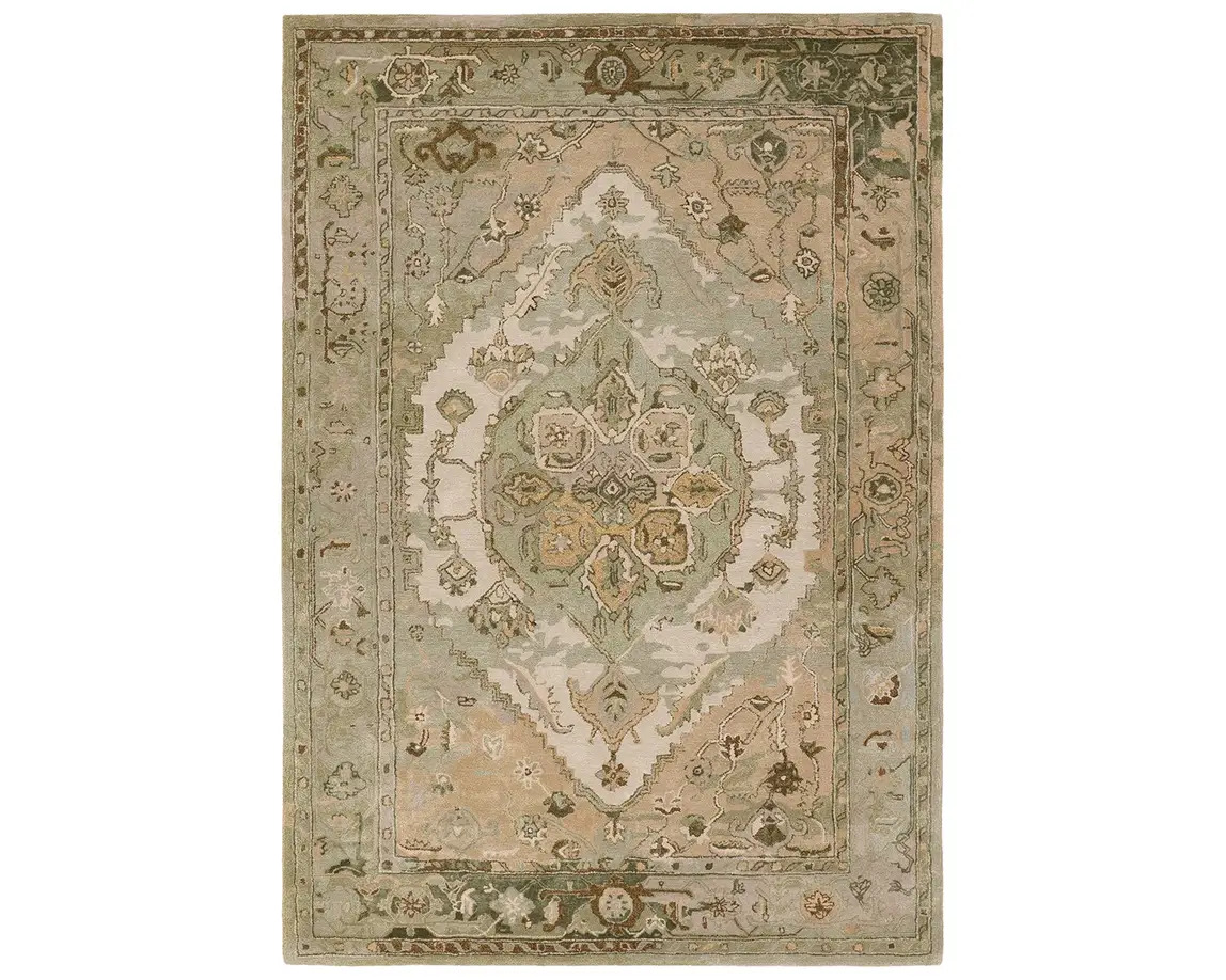 The Citrine collection is an assortment of distressed Old World patterns reinterpreted for modern design. The hand-tufted Raisa rug features an antiqued center medallion in elegant, neutral hues of greens, taupe, beige, and cream. Made of wool and viscose, this timeless rug boasts an ultra-soft feel and elegant sheen. The plush material best suits low traffic spaces of the home, such as bedrooms, formal dining areas, formal living rooms, and sitting rooms.