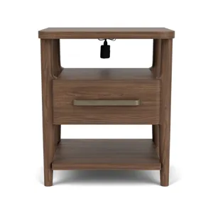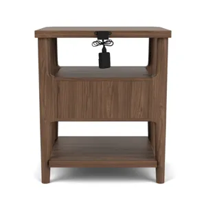 - Modern design featuring an open shelf at the bottom and convenient opening on top