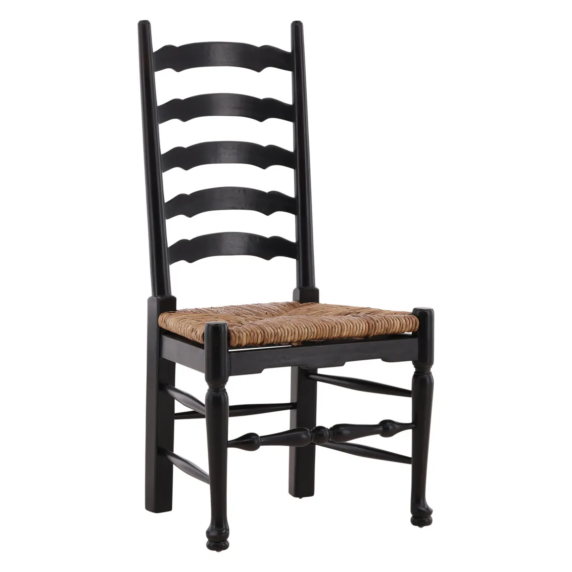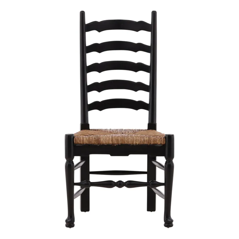 Crafted with timeless elegance and sustainable values, the Bradley Ladderback Side Chair brings classic design into the modern home. Made from sustainable grown mahogany, this chair features a hand-applied black finish that highlights the natural beauty of the wood grain while adding a touch of understated sophistication. The traditional ladderback design offers both charm and support, while the handwoven rush seat provides natural texture and comfort. Whether gathered around a farmhouse table or used as an accent piece, the Bradley chair is a versatile choice for any space.