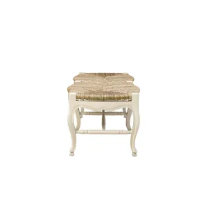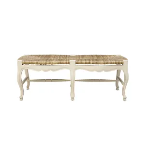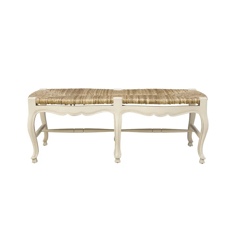 Embodying the charm of French country style with a modern touch, the French Backless Settee exudes elegance without fuss. Crafted from sustainably grown mahogany with a creamy, soft finish, this settee pays homage to classic French antiques. Its woven rush seat adds a layer of rustic texture, offering a comfortable perch with natural charm. Perfect for an entryway, end of the bed, or as an accent piece in any living space, the settee blends sophistication and casual appeal effortlessly.