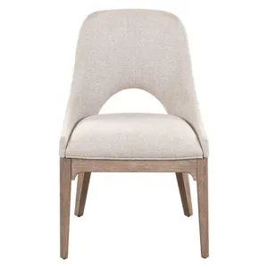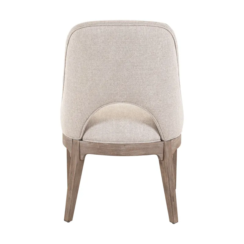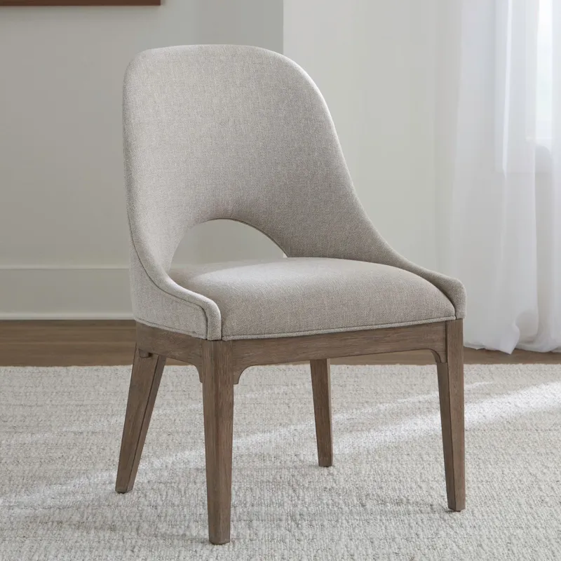 Relax in livable luxury with the South Bend upholstered side chair. Crafted with meticulous attention to detail using Rubberwood solids, this chair features a Burnished Clay finish. The chair boasts a unique design featuring sloped arms and a barrel back, offering both style and support. The Textured Gravel upholstery adds a touch of contemporary flair, elevating any space with its subtle yet distinctive texture. With its inviting silhouette and plush cushioning, the South Bend upholstered side chair invites you to sit back, relax, and enjoy moments of leisure in unparalleled comfort and style.