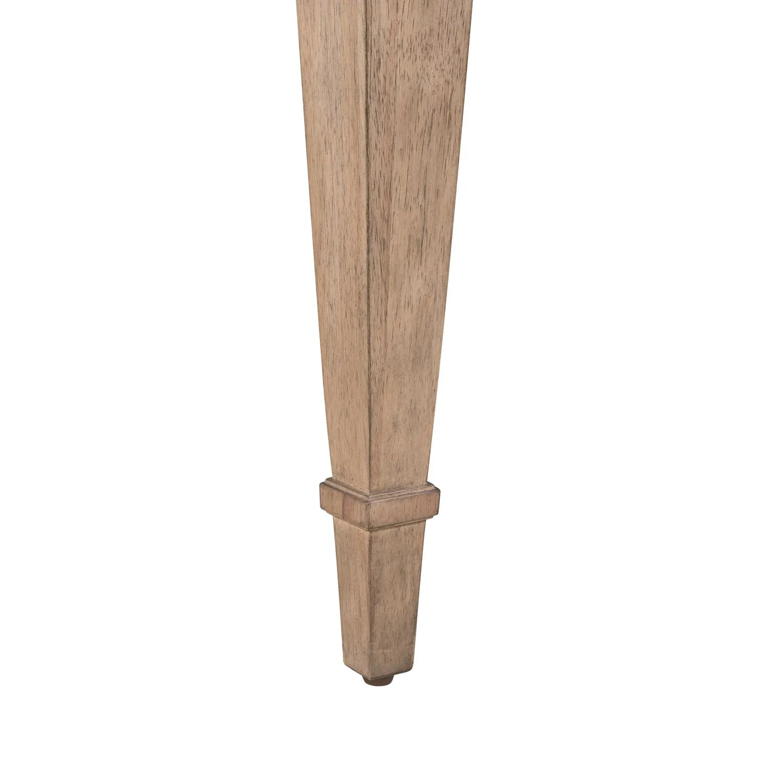 The Haven Hills Rectangular Leg Table brings timeless beauty and versatile functionality to your dining room. Crafted of Rubberwood solids with Rustic Birch veneers in a warm Camel Beige finish, the table features a seamless Birch veneer top that offers a clean, classic aesthetic. An 18-inch self-storing leaf extends easily on a smooth wood guide track system, perfect for gatherings both large and small. Under top molding adds depth and presence, while square tapered legs with stepped molding details complete the traditional look with refined elegance. A true centerpiece for any classic dining space.