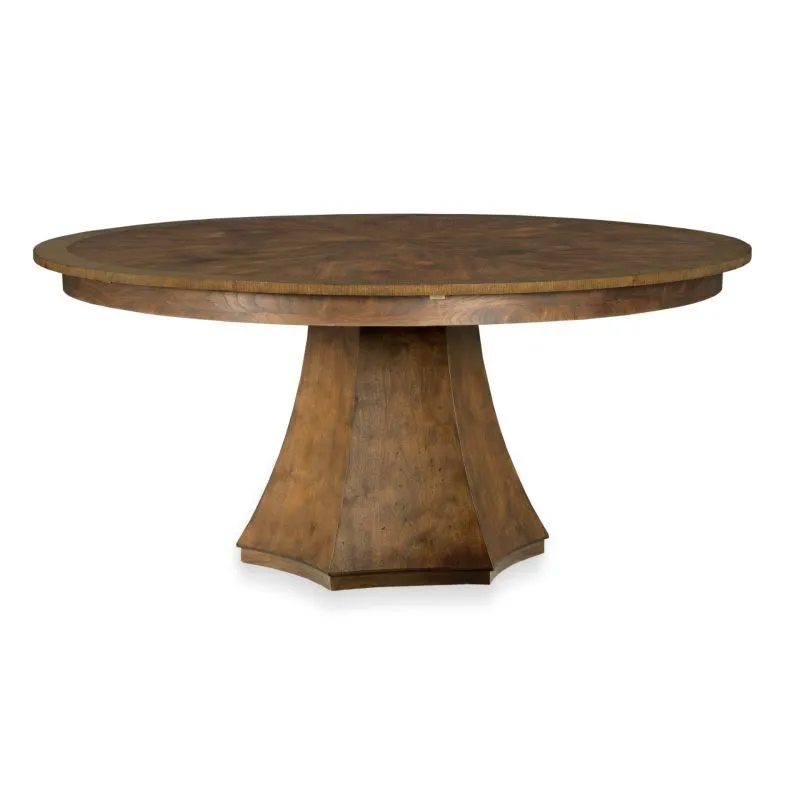 A wonderful expanding table perfectly scaled for smaller dining rooms and kitchens. The top expands using a historically inspired mechanism originally developed in the 19th century. The top extends from 66” closed to 84.75” when opened. The top is elevated on a unique concave base.