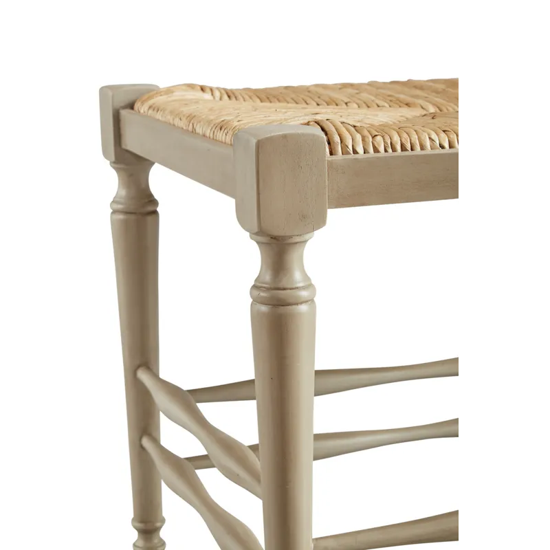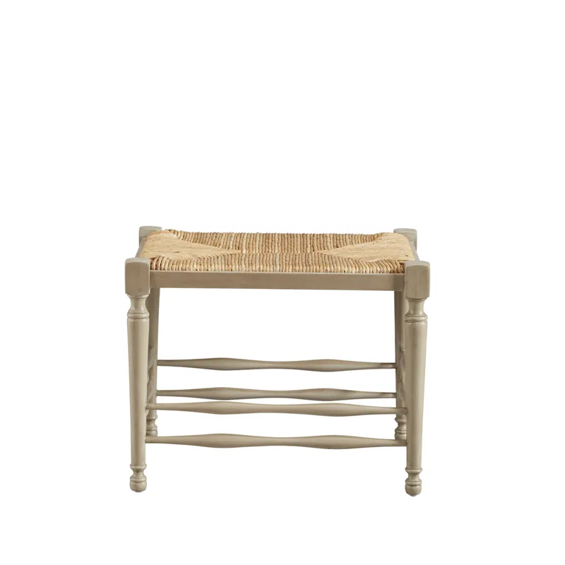 Traditional Jacobean design has been lightened and refined to create this charming stool, which is crafted from solid mahogany. Double stretchers on all sides add strength, while the hand woven and tied rush provides a comfortable seat. Pull this charmer up to a table for extra seating, or tuck it under a console when its services are not required. This practical little beauty is available in two finishes, making it easy to add to your decor.