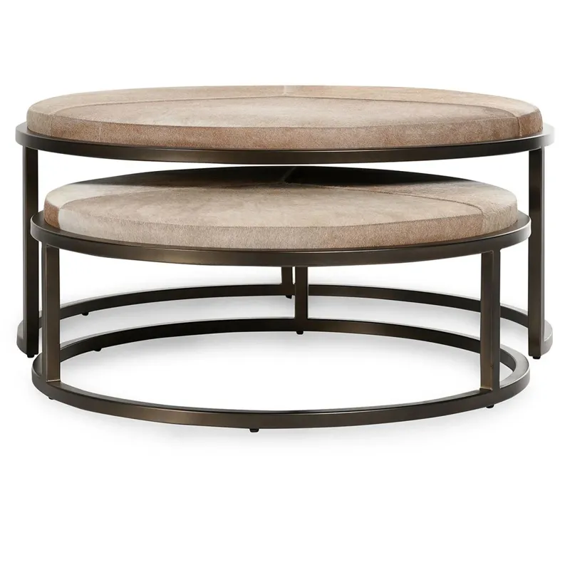 The Hayword Nesting Coffee Tables offer both sophistication and functionality. With luxurious hide-covered tops and a sleek metal frame, these tables nest neatly to save space or create a layered look. Perfect for modern living spaces, they combine contemporary elegance with practical design.