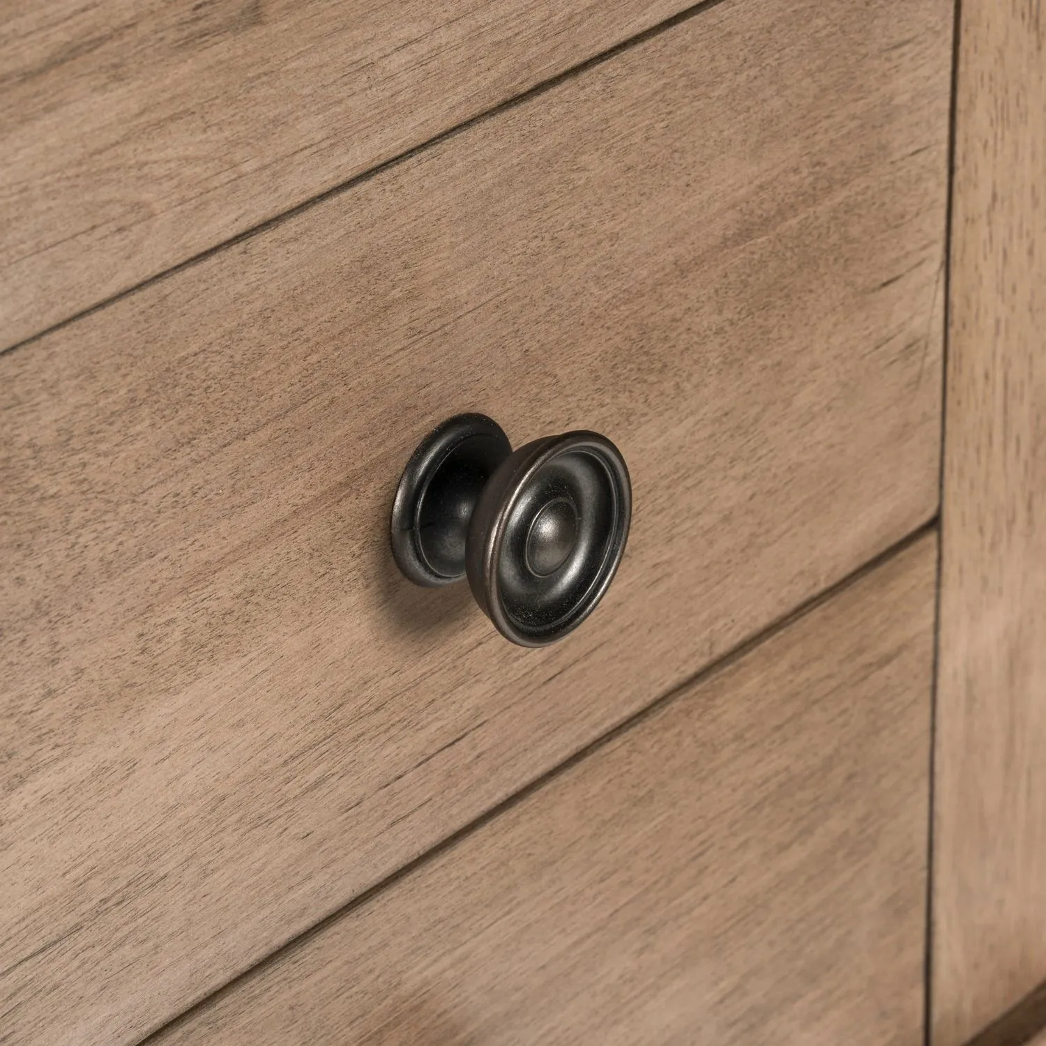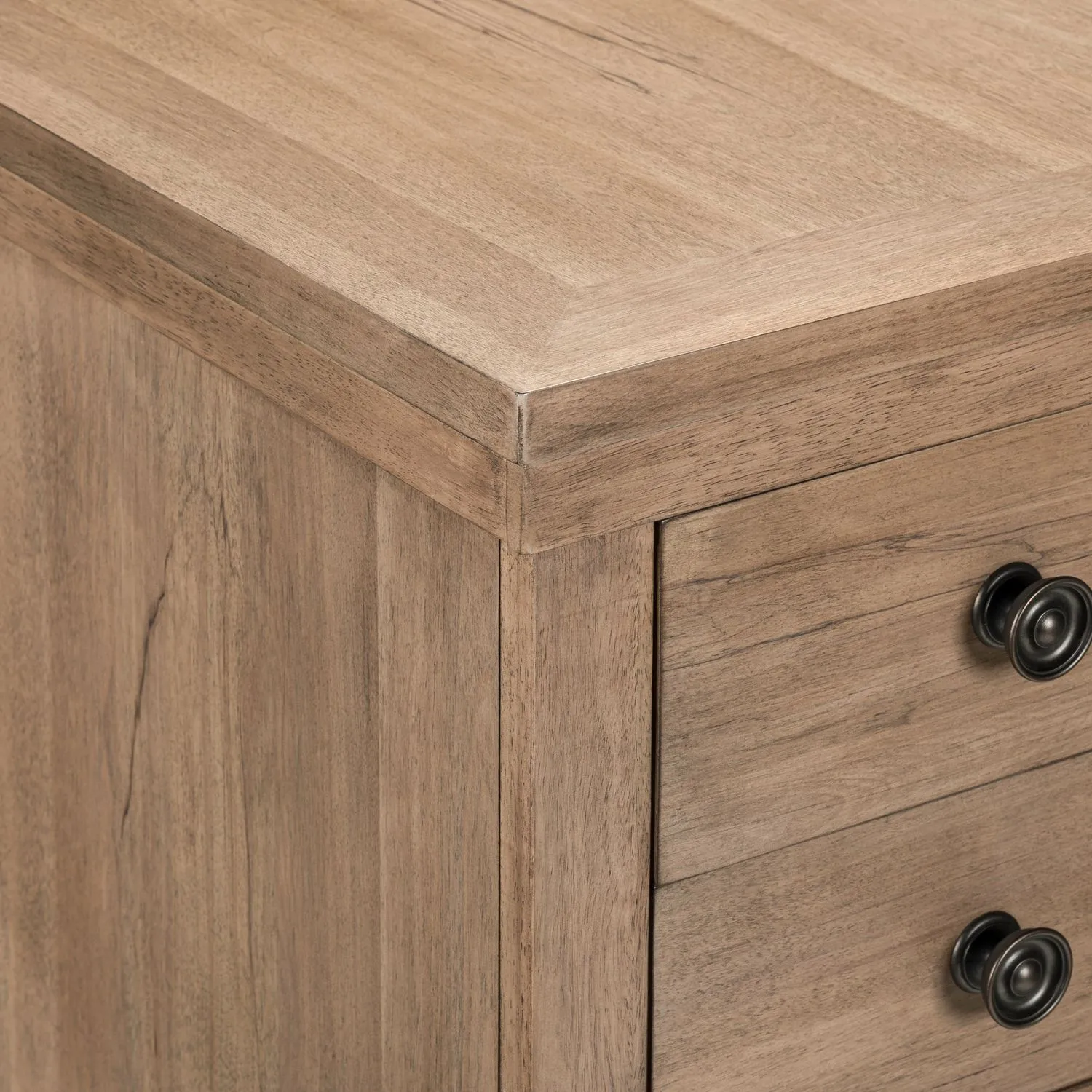 Beauty meets function in the Haven Hills Chairside Table, a perfect blend of traditional charm and smart storage. Crafted of Rubberwood solids with Rustic Birch veneers in a warm Camel Beige finish, this table brings a timeless presence to any room. Wide under top molding, bold block pilasters, and step base molding with a shaped bottom rail add depth and classic detail. Three flat-front storage drawers provide convenient space for everyday essentials, each accented with elegant Burnished Brass knob hardware. Slim in profile but rich in character, the Haven Hills Chairside Table is the ideal companion beside your favorite seat.