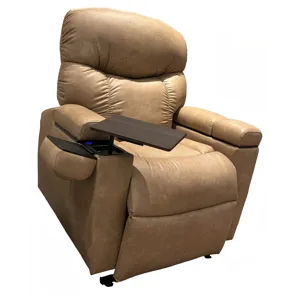 Take a vacation from your busy day in the Sedona Power Lift Recliner by UltraComfort. This medium-sized lift chair offers an overstuffed seamed back design, a plush chaise pad, and numerous standard features providing hours of unmatched comfort. When it comes to reclining, your positioning options are endless with our 4-Zone Comfort Zone Positioning System which includes our patented Stellar Positioning, adjustable headrest and adjustable lumbar all operated by our programmable AutoDrive™ hand control. Additional features all conveniently located in the open-arm design include: