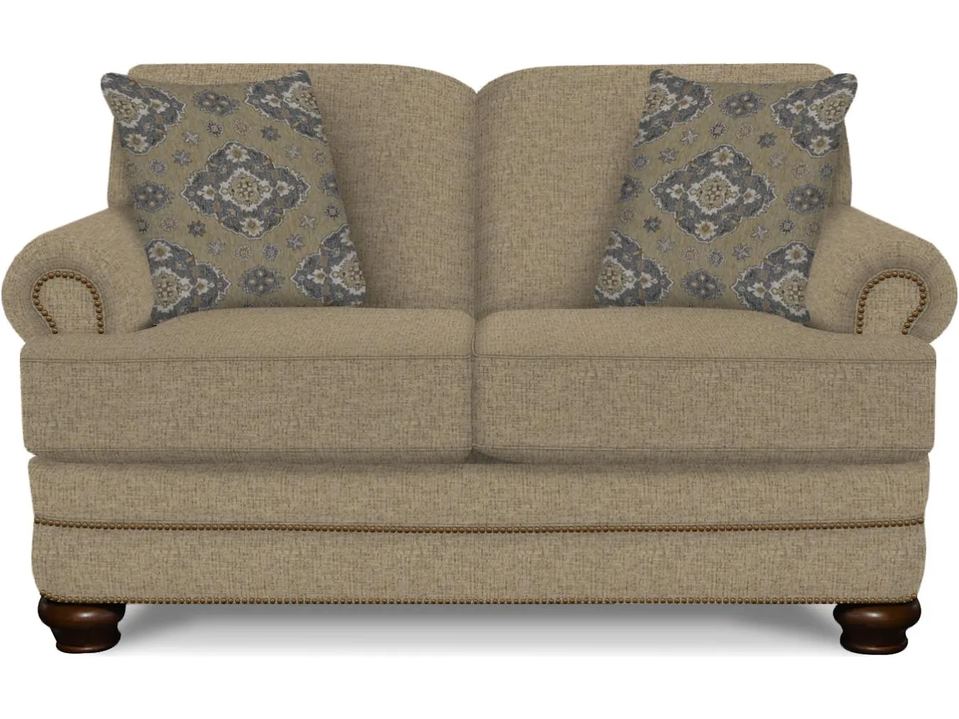 Satisfy your classic taste with our charming Reed collection. With its tight scroll back, rolled arm, turned bun leg, and baded front rail, you've got the makins of a living room masterpiece. Add an optional antique brass nailhead trim for added flair. The Reed collection features a sofa, loveseat, chair, ottoman, and sectional.