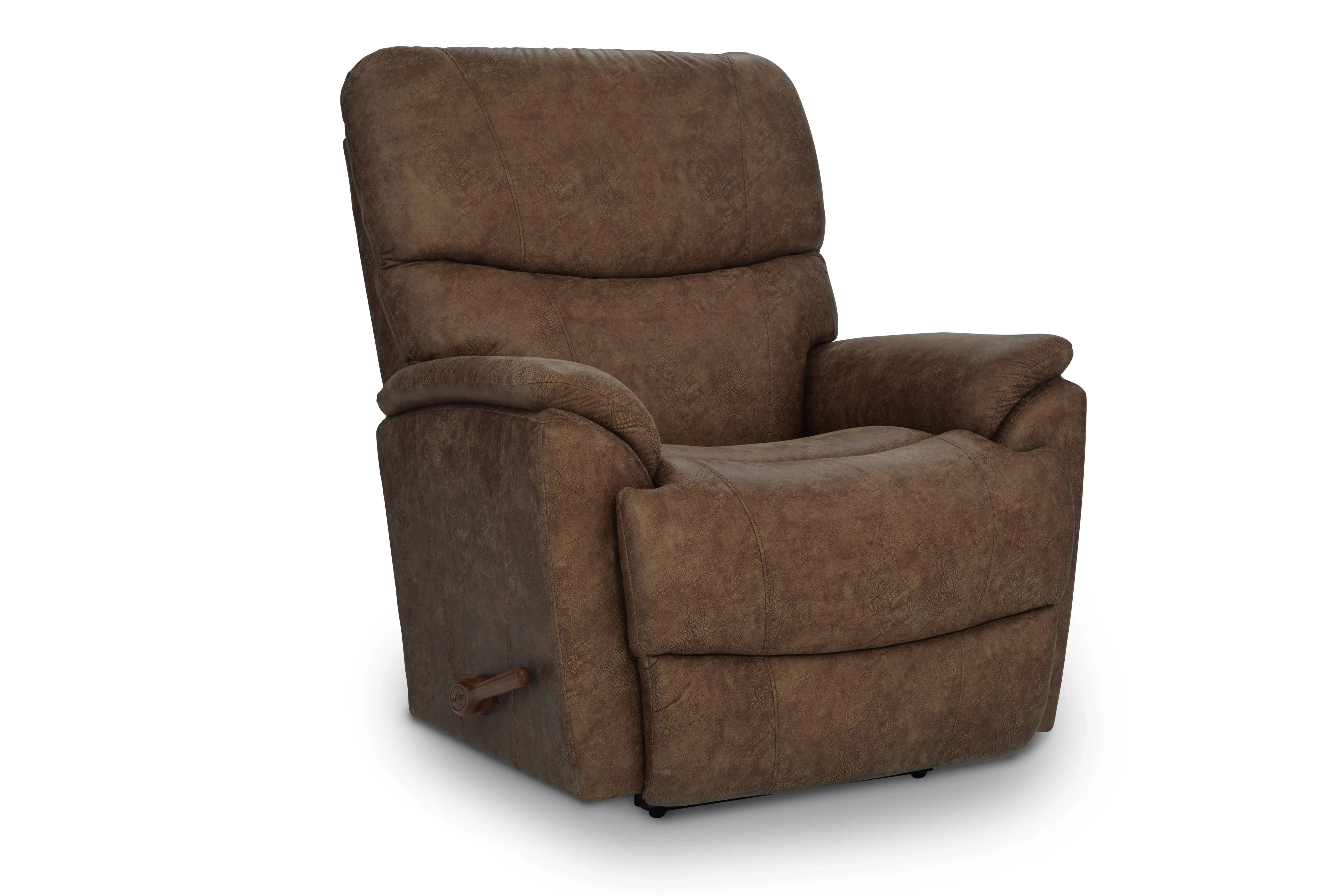 An updated silhouette, complete with slightly flared arms and a sleek tall back give Trouper a look that’s fresh and contemporary. It’s also one comfortable recliner. The sculpted bucket seat cradles you in softness while the padded split back provides superb head and lumbar support. Simply use the convenient handle on the outside arm to raise the legrest for reading, relaxing or watching TV. When you’re not reclining, it’s a relaxing rocker with a smooth, graceful motion.
