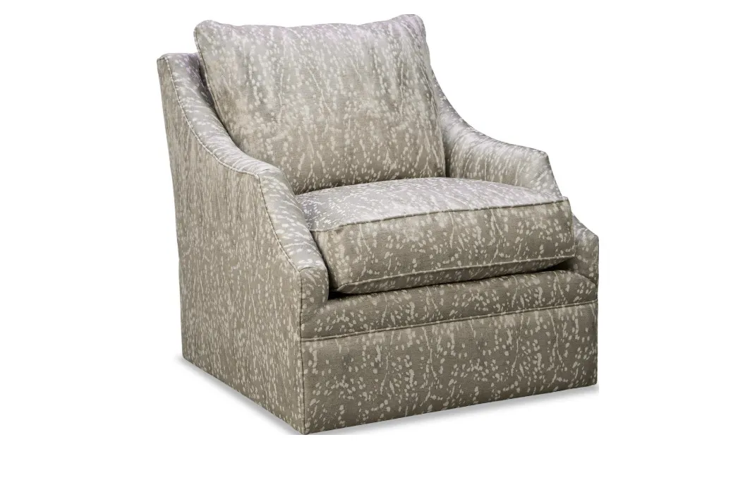 Perfectly designed and easy to love, this swivel glider is a comfortable classic piece you will love for years to come. It features a beautifully shaped scallop arm, a loose knife edge back pillow, and Paula's exclusive Down Blend cushion for the ultimate in softness.