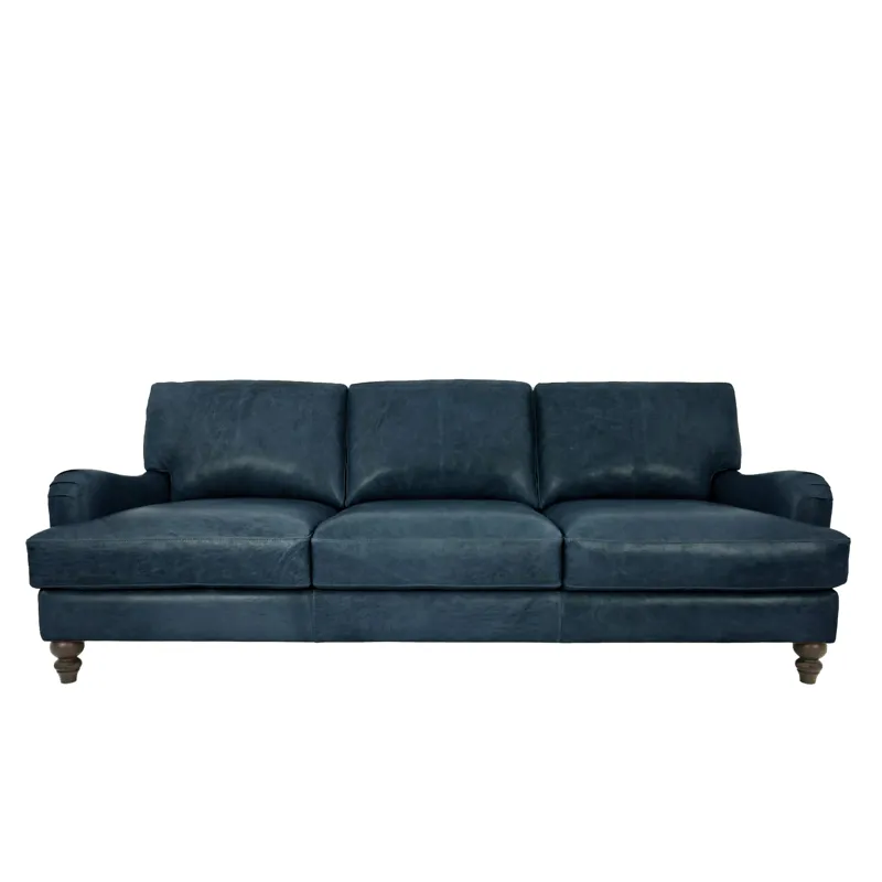 Indulge in timeless luxury and comfort with our Italian Leather Sofa, crafted from rich, soft navy Italian leather for a sophisticated, elegant look. This high-quality leather is both durable and supple, ensuring years of lasting beauty and comfort.