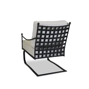 Constructed in expertly crafted wrought iron, the Provence Rocking Club Chair displays a woven back to emulate basket weave, and subtly brushed Century Pewter antique finish. Gentle rocking frame and generous seat are scaled for absolute comfort.