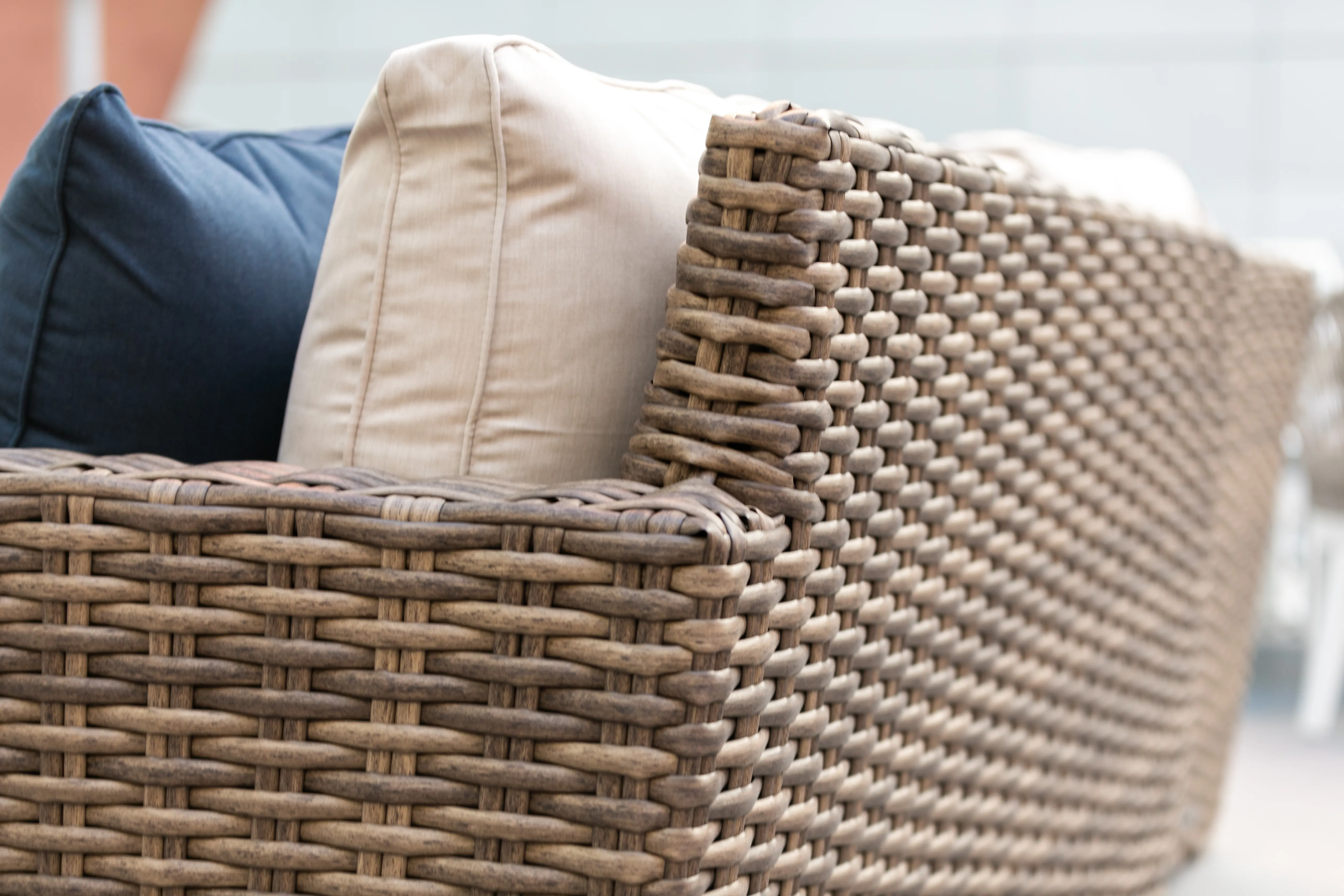 Wrapped in virgin PE Resin Wicker in Weathered Tobacco Leaf