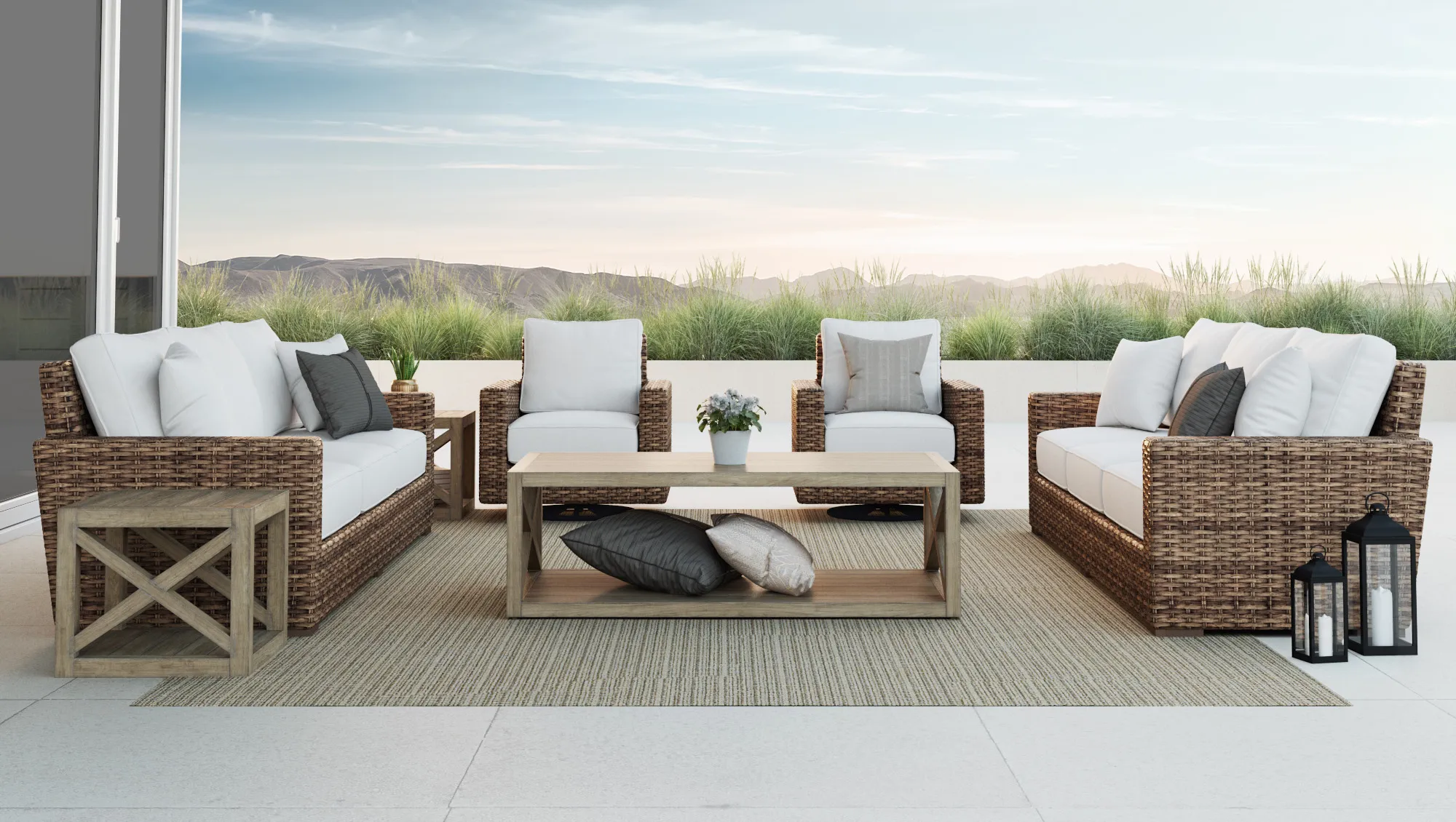 Crafted in the highest quality comfort and durability, The Havana Sofa captures the relaxed nature of outdoor living with its organic texture and ample proportions. Featuring a premium all-weather wicker in a rich Aged Tobacco and tailored cushions, Havana spans multiple design styles and offers a prominent seating and dining statement.